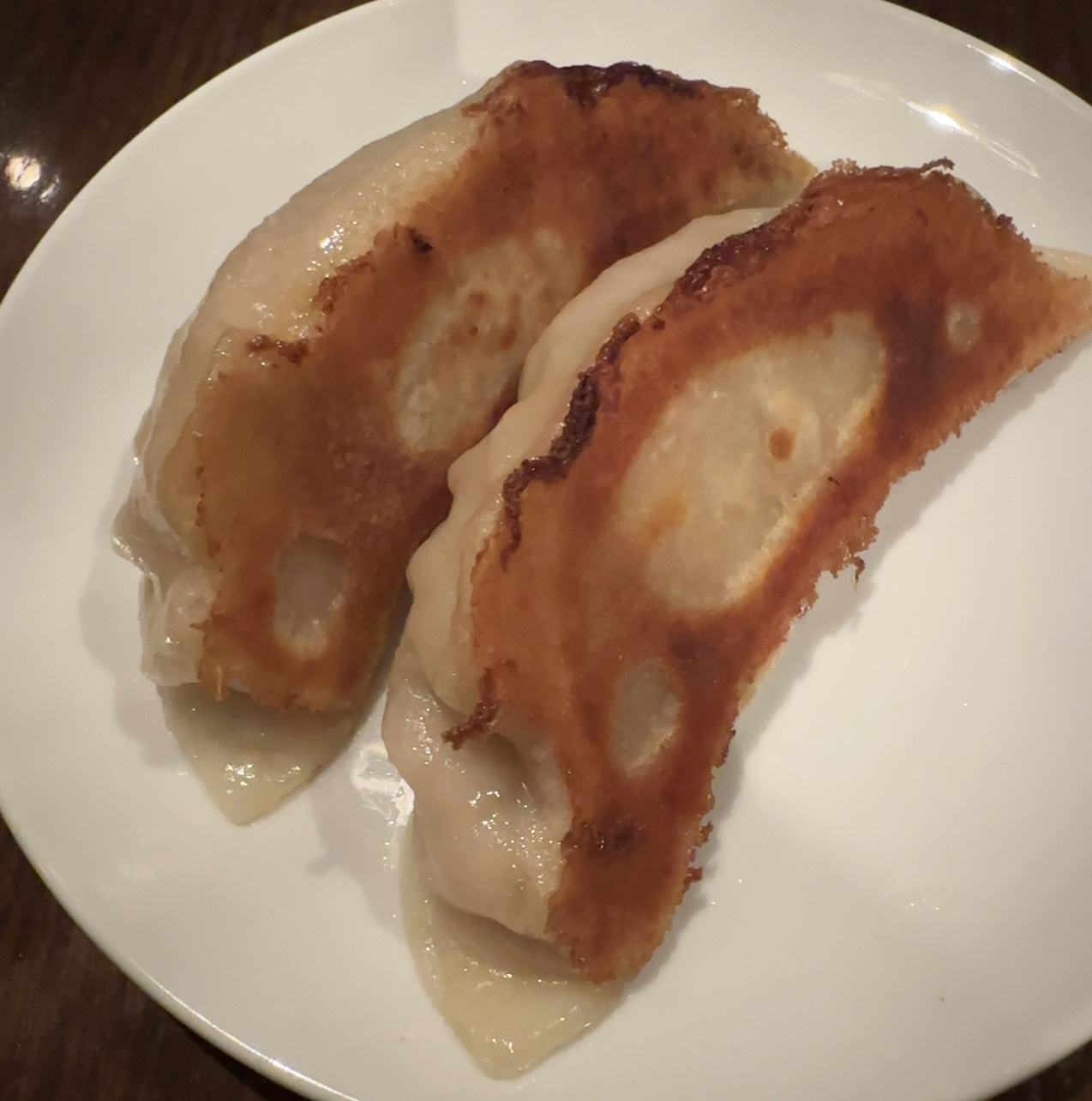 看板メニューの餃子は、皮はもちもちで中にはジューシーなお肉がぎっしり、香ばしく焼き上げられていて絶品です。