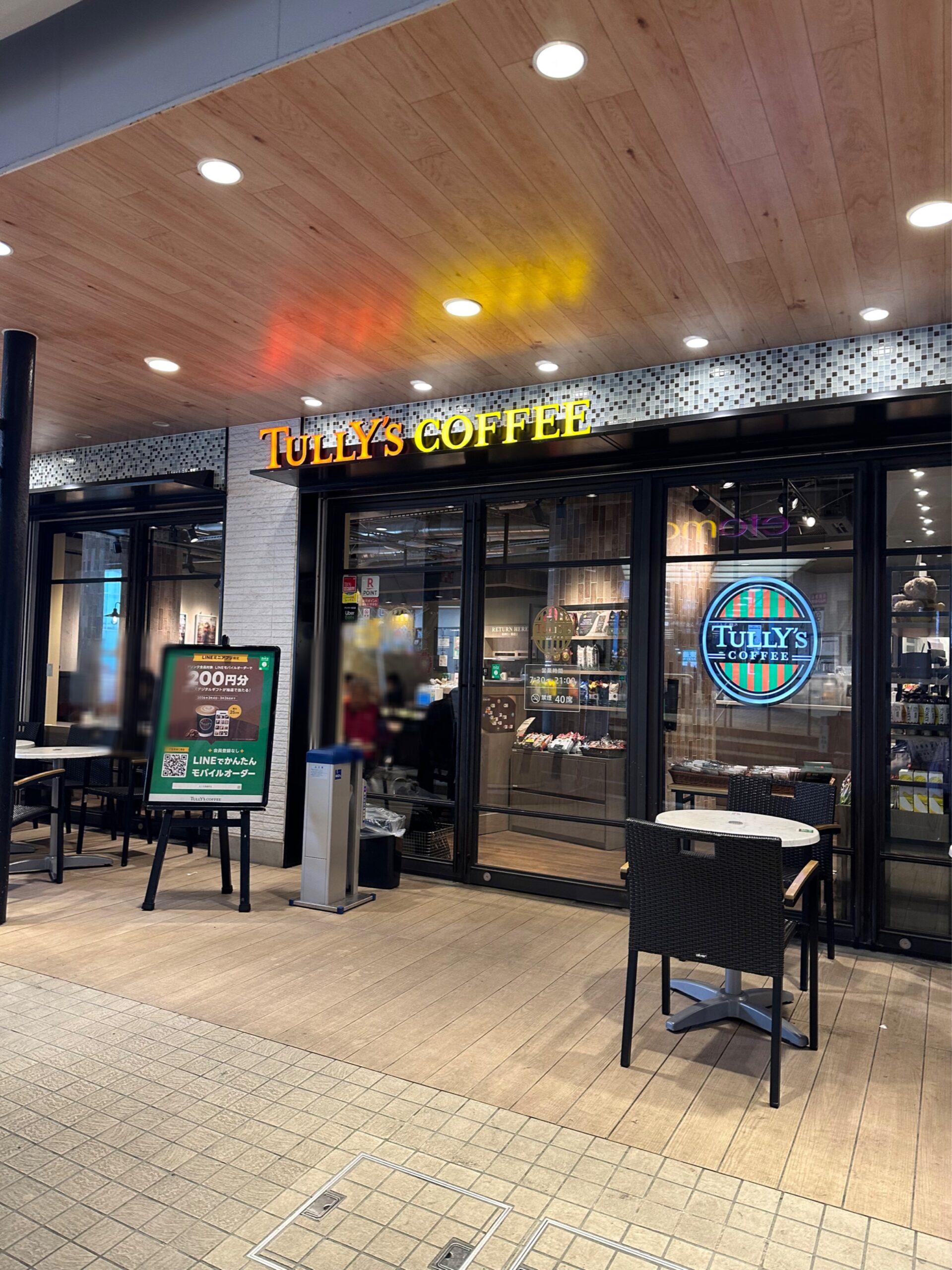 「タリーズコーヒー/エトモ自由が丘店」。自由が丘駅改札を出て1分もかからないところにあり、とても便利です。Tully’s/Wi-Fi完備のお店です。