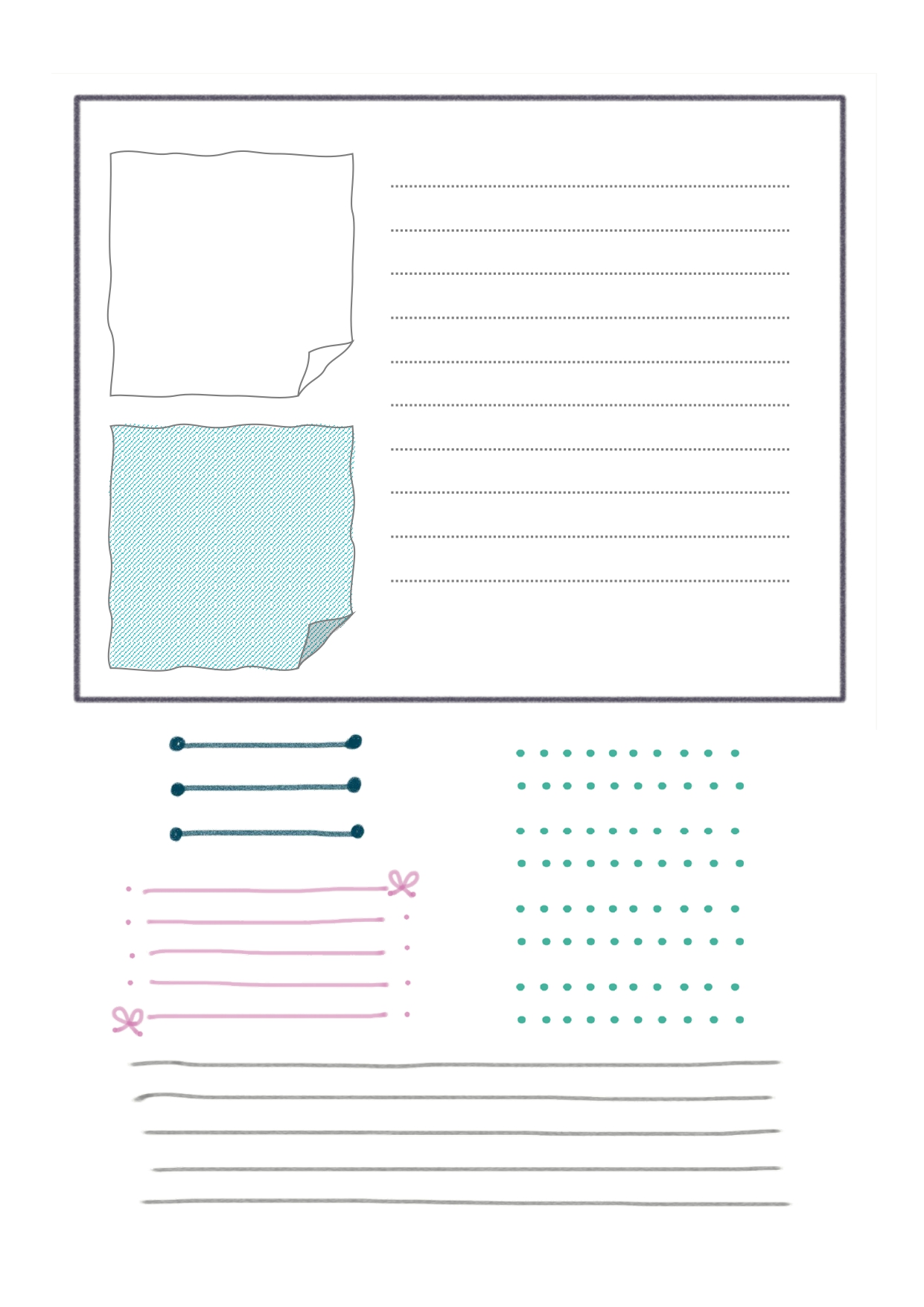 お好きな配置にした後、シールタイプの用紙にプリントすれば、そのままカットしてシールとしてお使いいただけます。きちんとしたラインと、手書き風のものと、雰囲気に応じて使い分けてみてください。