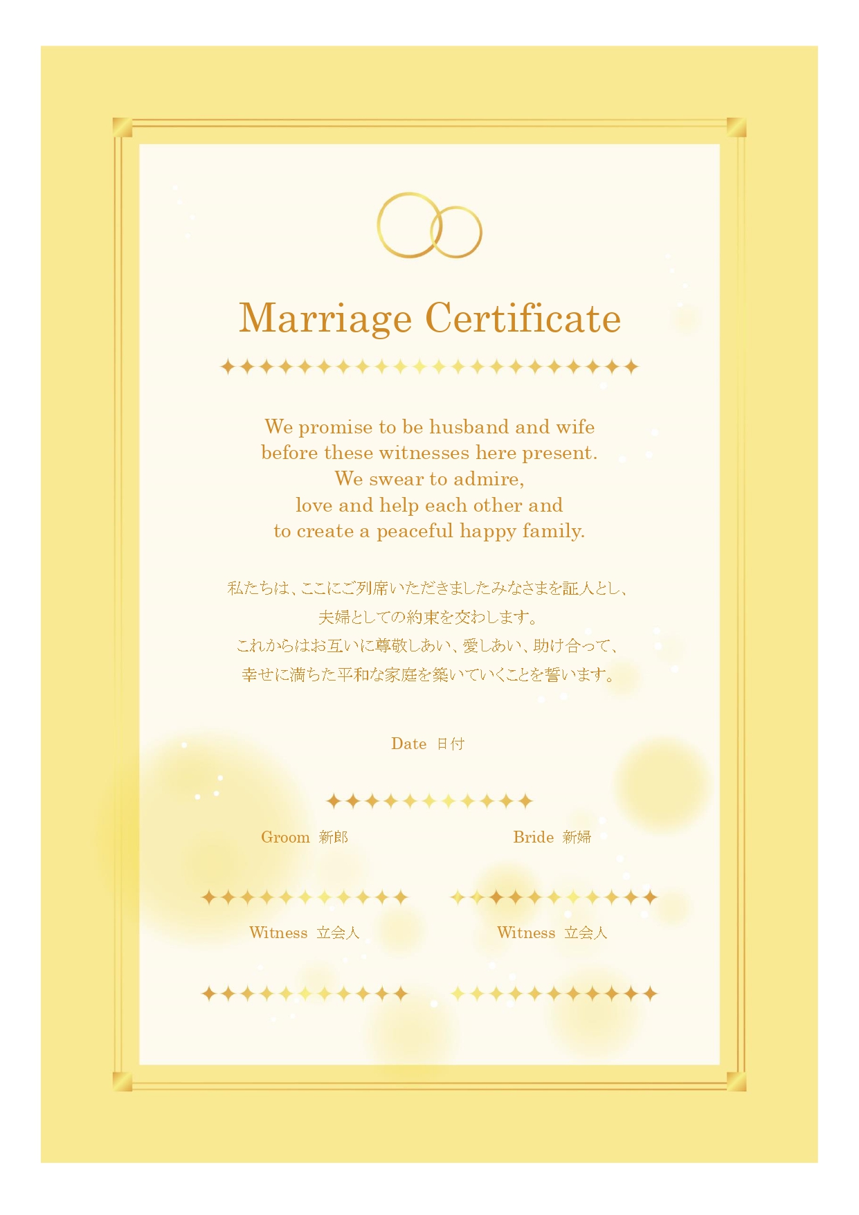 シャンパンゴールドカラーで上品で温かみのある結婚証明書のテンプレート!