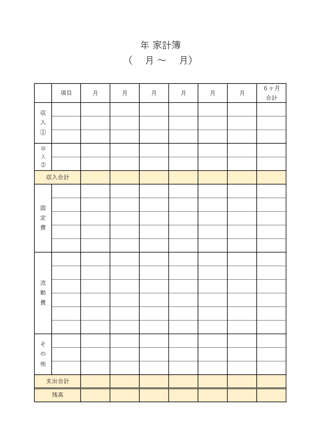 月別・6か月単位の家計簿「Excel・Word・PDF」シンプルにお金の管理が簡単に出来るテンプレートとなります。月毎の家計簿を作成する事で、6か月分の合計が作成出来る簡易的なタイプのフリー素材となります。ダウンロード後に印刷し手書きや追加記入などの簡単に行えます。