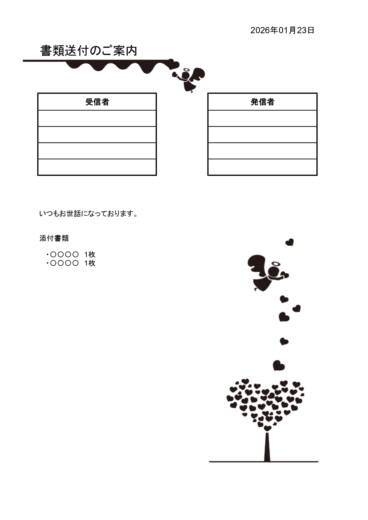 書類&FAX送付状(2月のイラストかわいいデザイン)ハートと天使(バレンタイン)「Excel・Word」