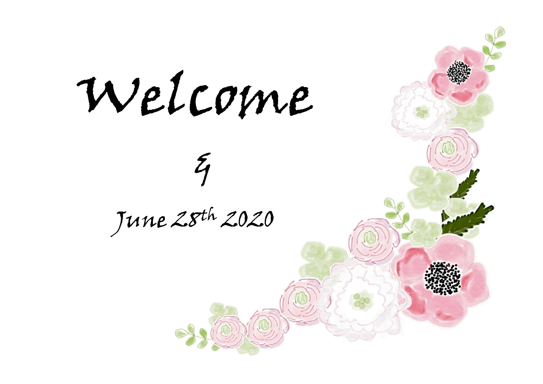 結婚式ウェルカムボード☆明るい色のお花のデザインが施された優しく温かみのあるデザイン!名前と日付を入れるだけの簡単テンプレート!