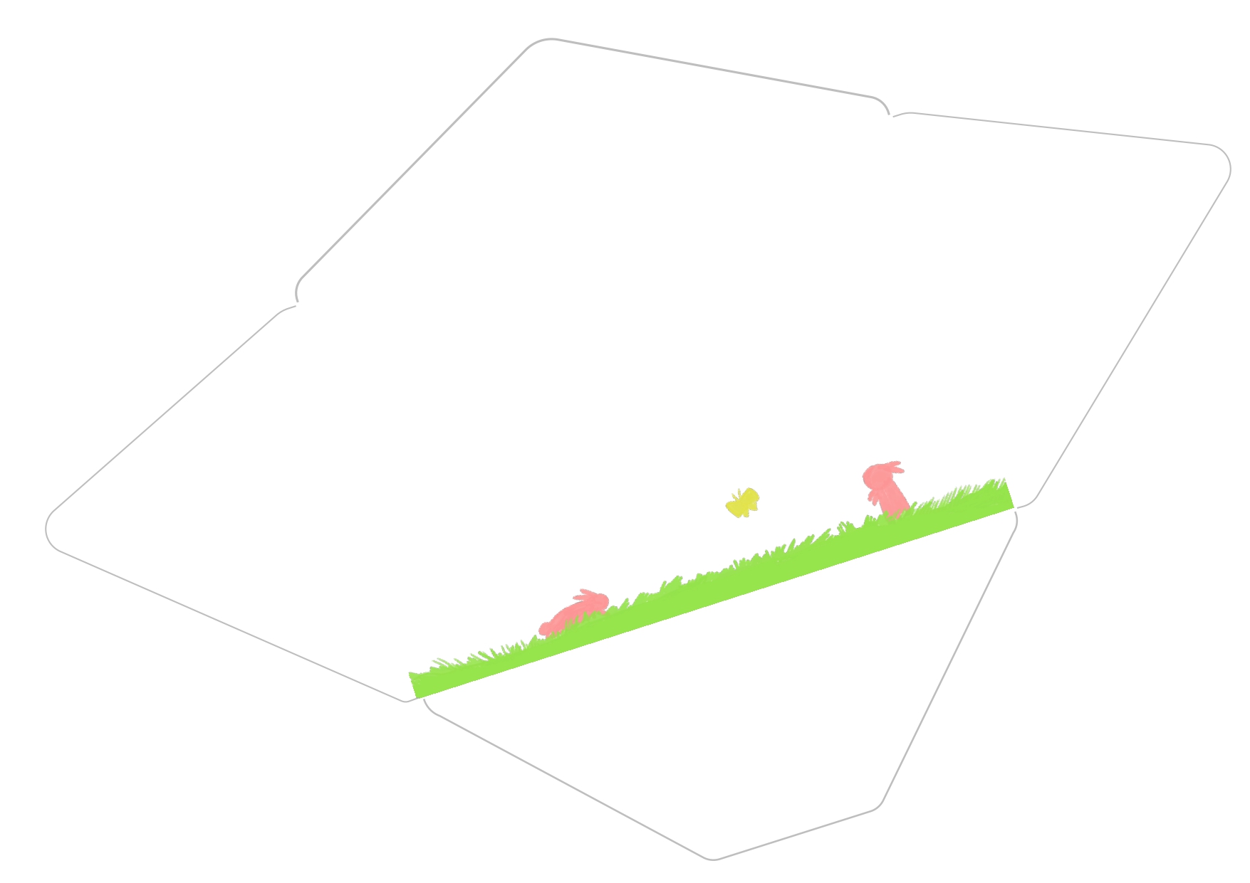 いわゆる「洋型」と言われる形の封筒を自作できるテンプレートで、線に沿ってカットし、内側に折り込んで縁をのり付けします。草原で遊んでいるウサギのイラスト入り、個性的なお手紙を出したい方におすすめの洋封筒となります。印刷し簡単に切り取りを行う事で作成出来ます。