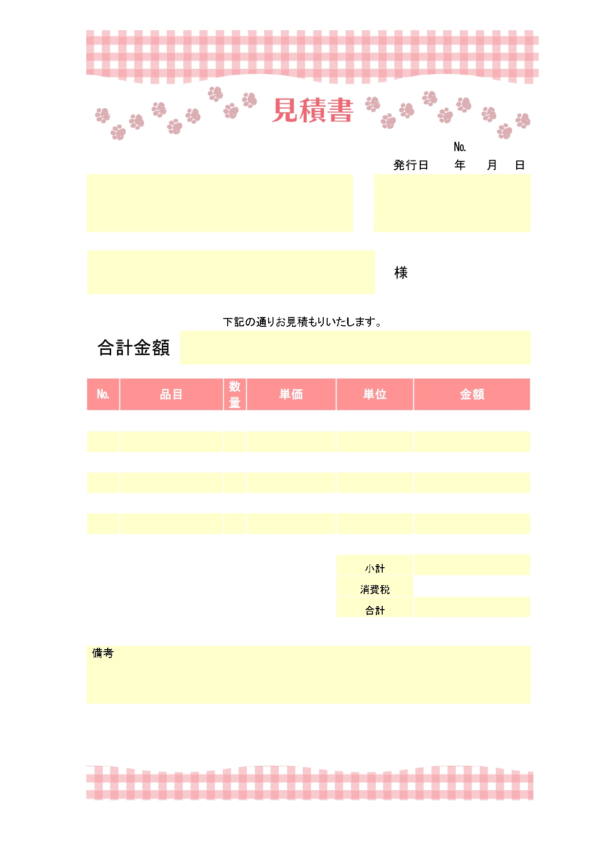 かわいい&おしゃれネコと風車「見積書」「Excel・PDF・Word・A4・縦型」イラスト入りのテンプレートとなり、かわいいネコと風車のイラストが描かれている見積書となります。ダウンロードしエクセルとワードは編集可能・PDFは印刷後に手書き
