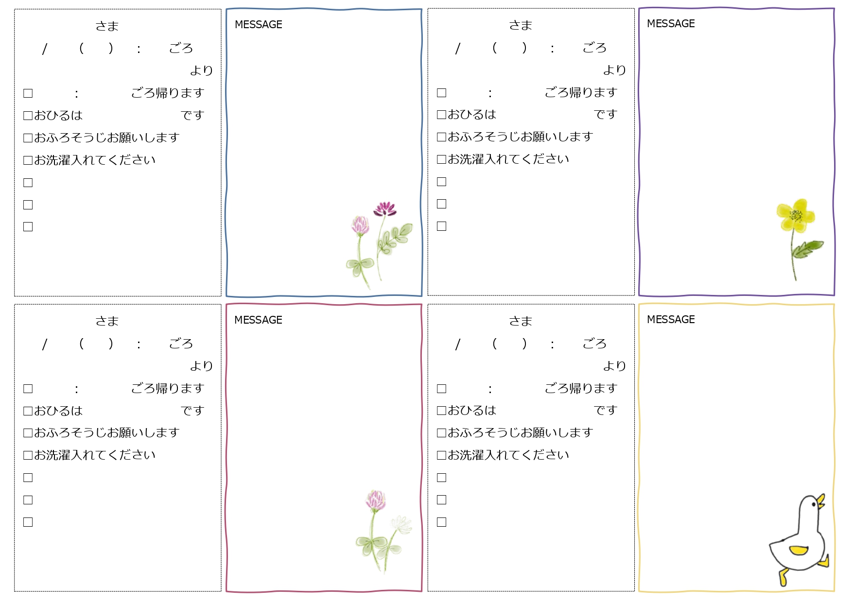 かわいいイラスト入り(目玉焼き&おにぎり)楽しい電話&伝言メモ「Excel・Word・PDF」A4・8分割のテンプレートとなり、ダウンロードする事で、編集可能な「Excel・Word」と印刷し切り取る事で利用出来るPDFがセットとなります。