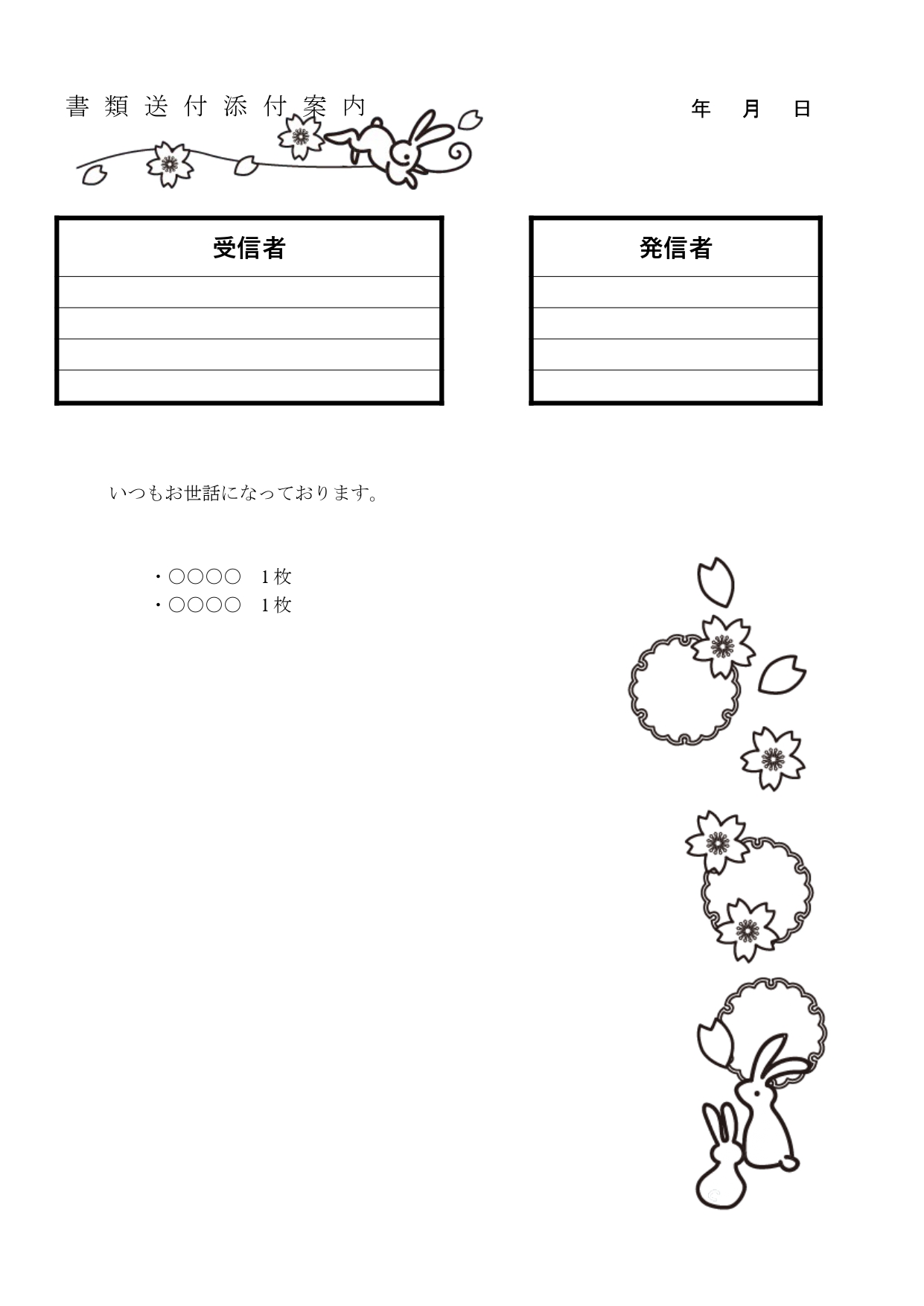 桜の花とウサギが可愛いイラスト・添え状・書類やFAX送付状「Excel・Word」で簡単に編集が出来るテンプレートとなります。大学宛や会社宛でも利用が可能な少し