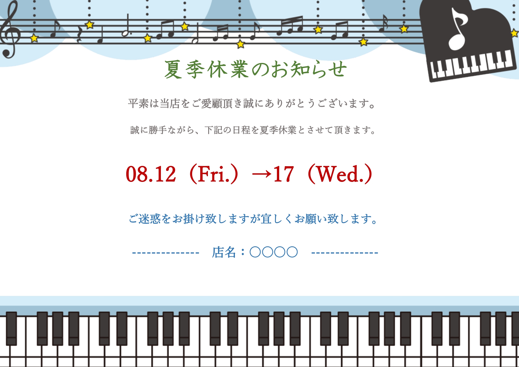 ネイルやヘアサロンなどシンプルでオシャレな夏季休業・休暇のお休みのお知らせをダウンロード おしゃれでかわいいデザインですので、ネイルサロンやヘアサロンなどの店舗やお店の夏季休業や長期休業のお知らせの張り紙、店内の掲示物などにおすすめの
