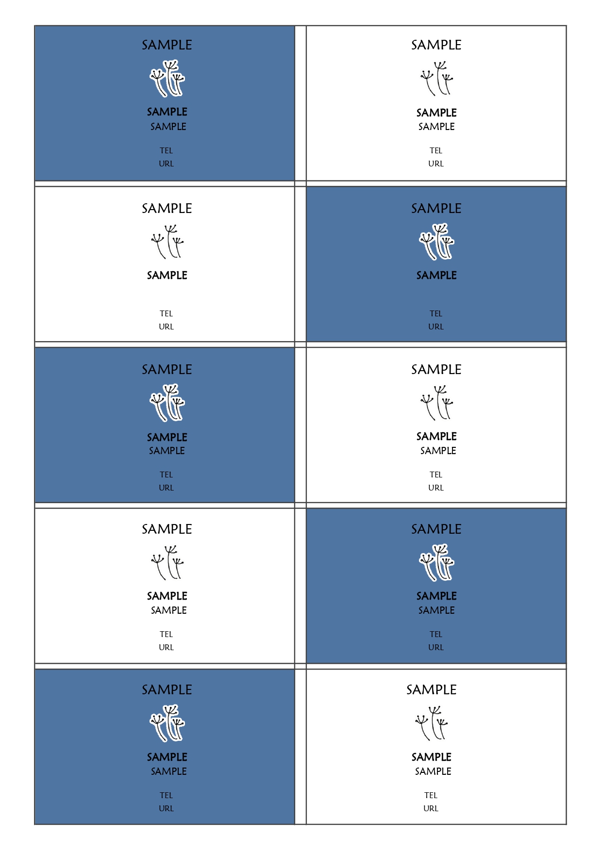 連絡先以外の情報を載せておくと、そこから話が発展して、初対面の方とも打ち解けるきっかけができたりもします。この小さいカードに、様々な可能性が詰まっているのですね。こちらのテンプレートは、シンプルな内容にしてあります。もう1ページ増やして裏面を作り、両面印刷にすると情報を少し増やすこともできます。カラーを変えるだけで雰囲気が全く変わるので、いろいろとお試しください。
