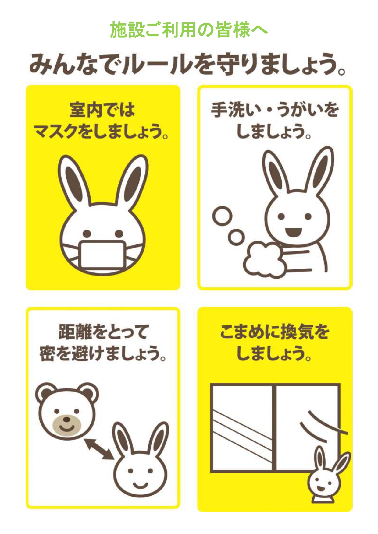 コロナウィルス感染拡大予防の注意喚起ポスター・チラシとしてお使いいただけるフォーマットです。不特定多数の方が訪れる施設や地域の方が集まる近隣センター、会社などでお使いいただけます。