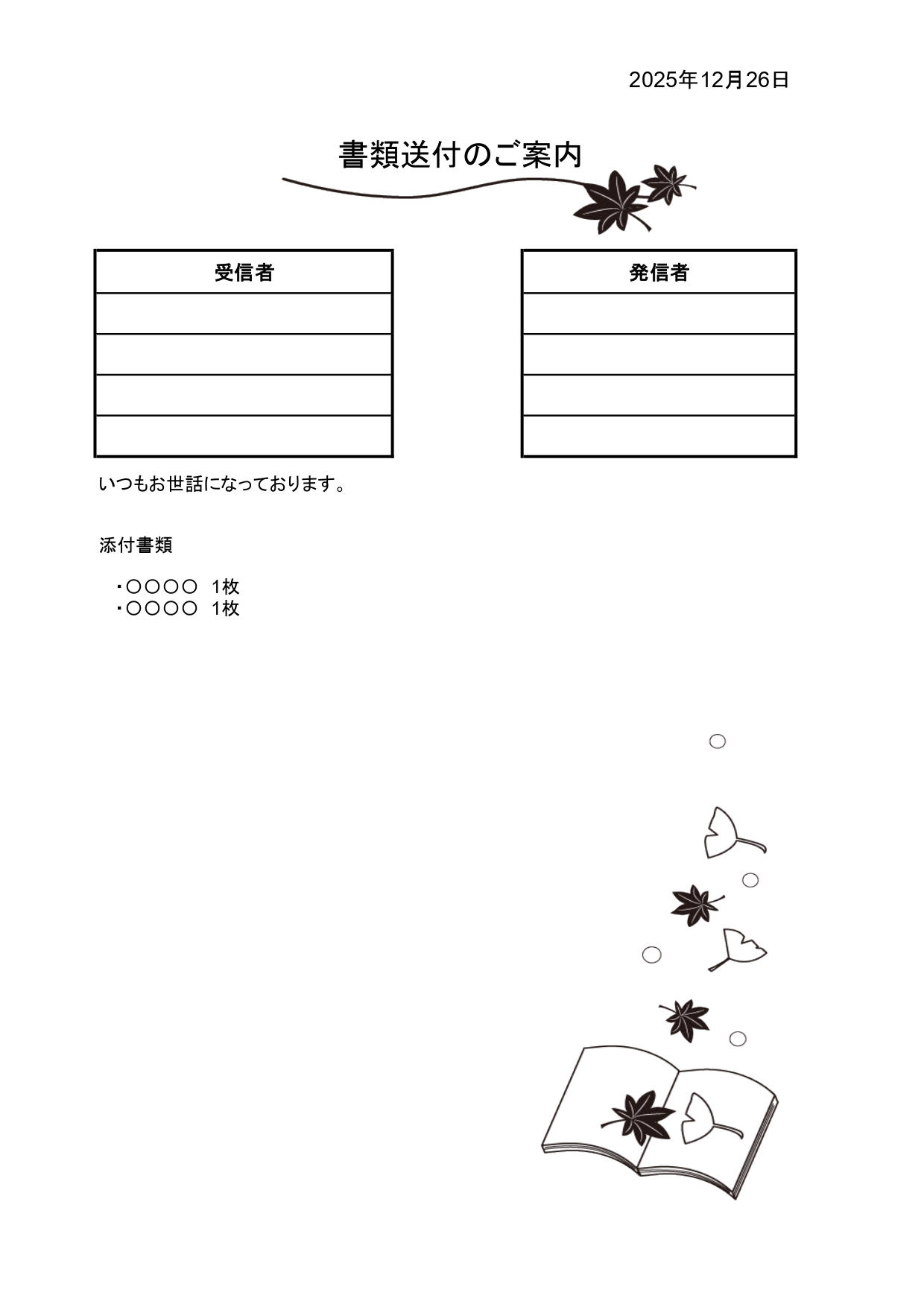 11月(モミジと本)書類&FAX送付状「Excel・Word」読書の秋・紅葉イラストフレームの無料テンプレートとなります。秋をイメージした11月の読書の秋や紅葉をイメージしたデザインのフリー素材となり、11月のイメージの送付状などをお探しの場合に、おすすめの素材となります。